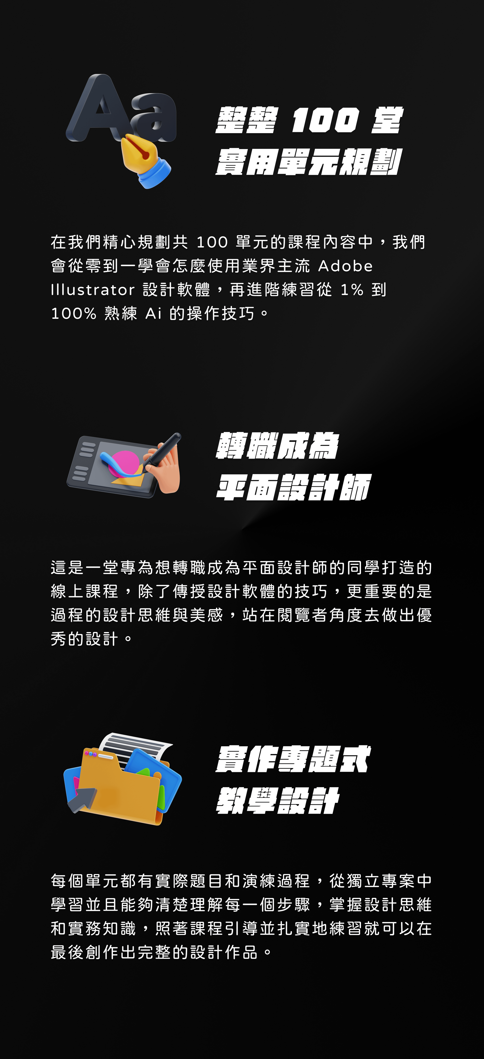 立即報名《100 種 Adobe Illustrator 設計技巧》線上課程,讓你的設計技能快速升級,成為業界不可或缺的設計人才!