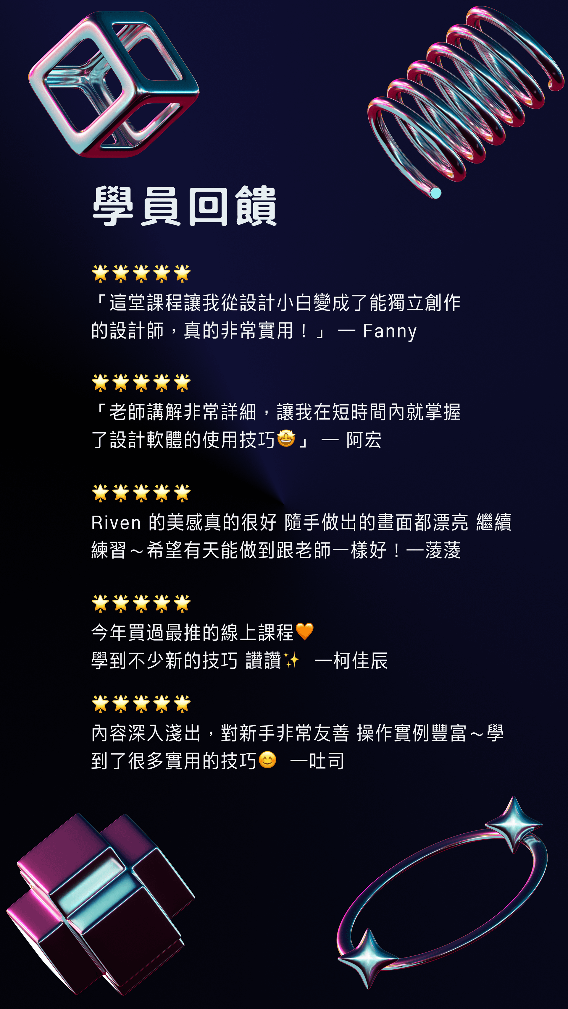 4. 專業設計:應用排版與配色等設計理論,創作出適合社群媒體、平面設計等多種用途的作品。