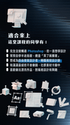 你會學到最實用的 Photoshop 技巧,從拼貼、霓虹字、插畫風、復古濾鏡,到商業設計實例。