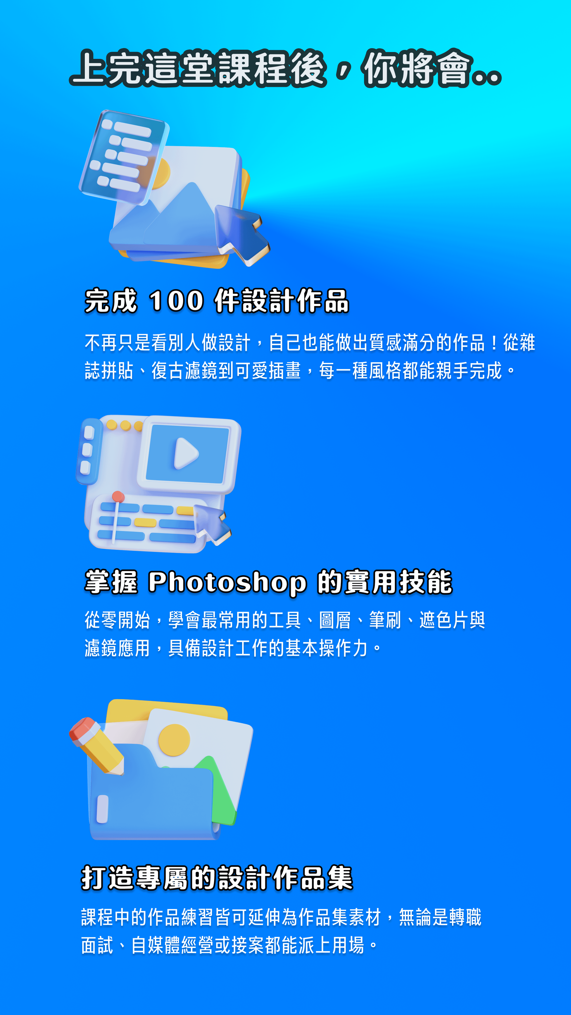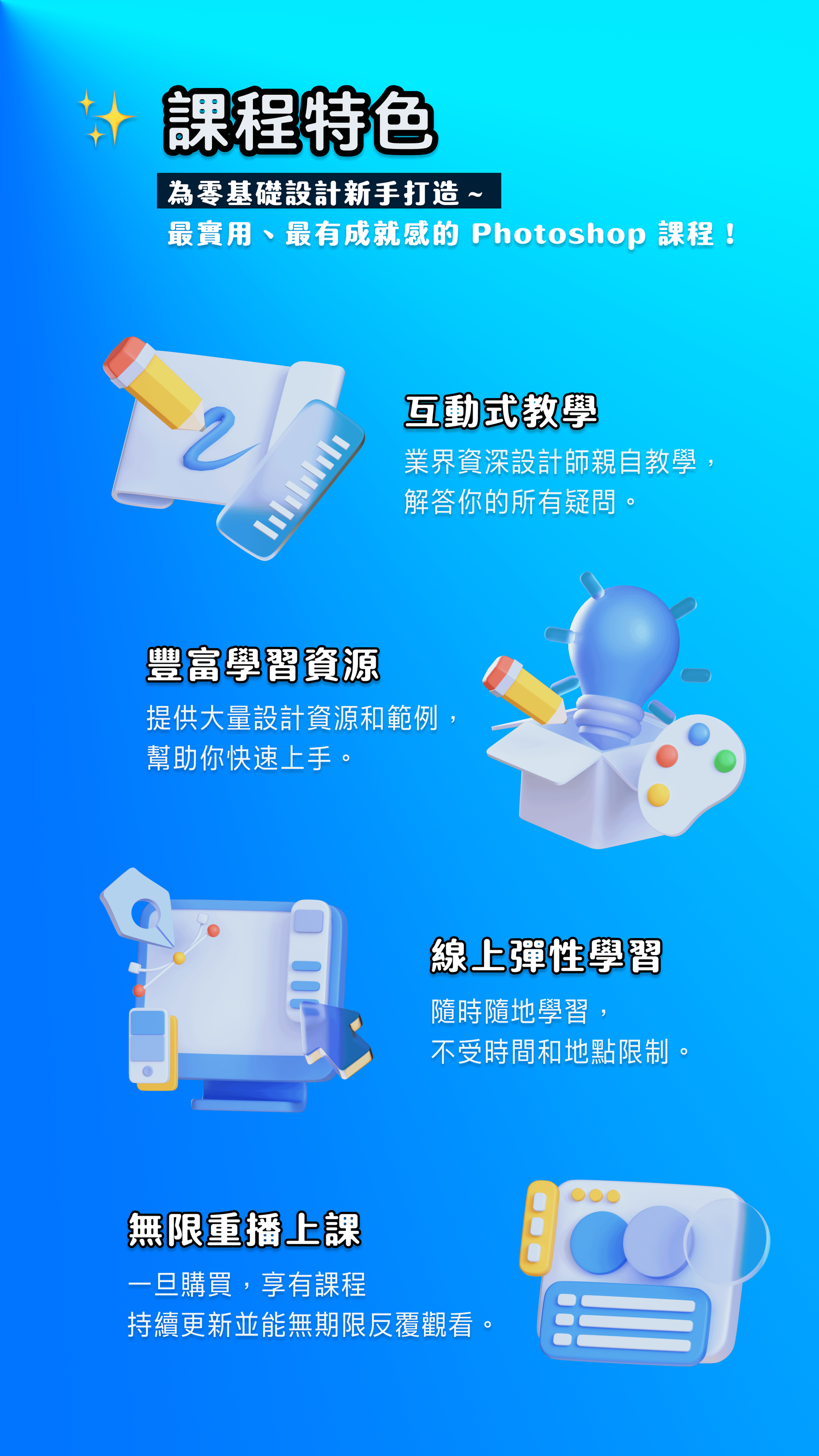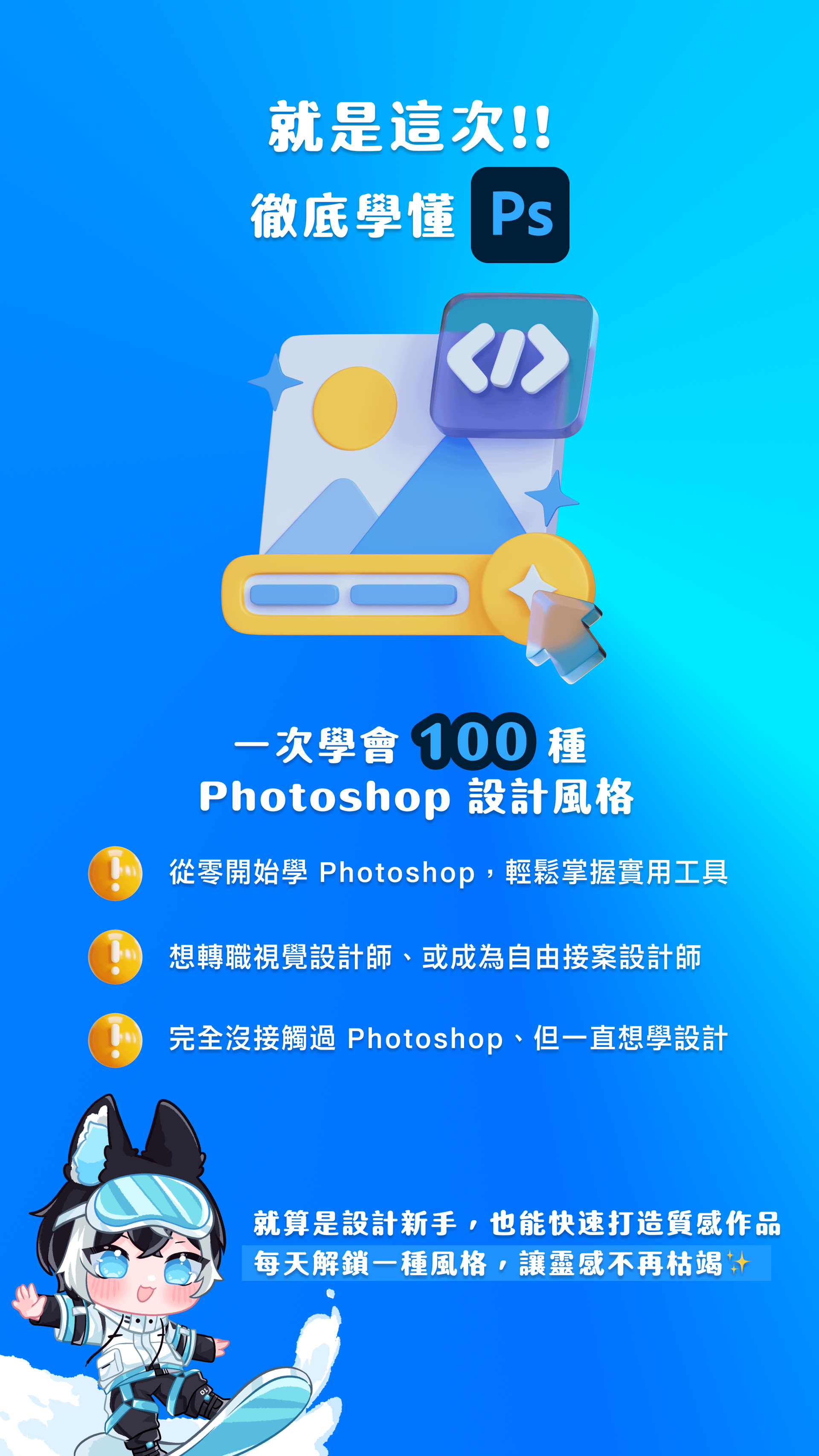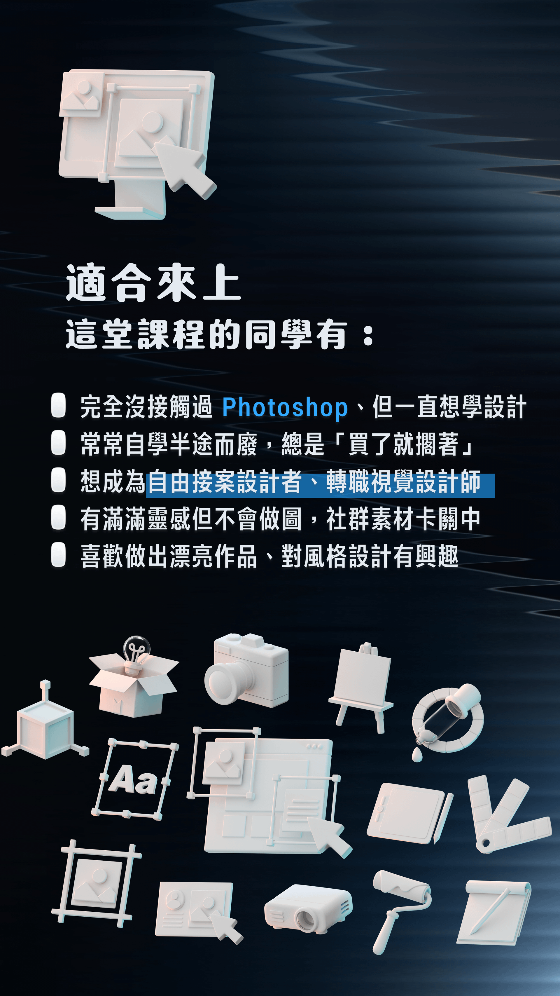 無論你是想轉職設計、自學技能、接案創作,或只是單純想變得更會設計,這堂課都將是你邁出的最好第一步。