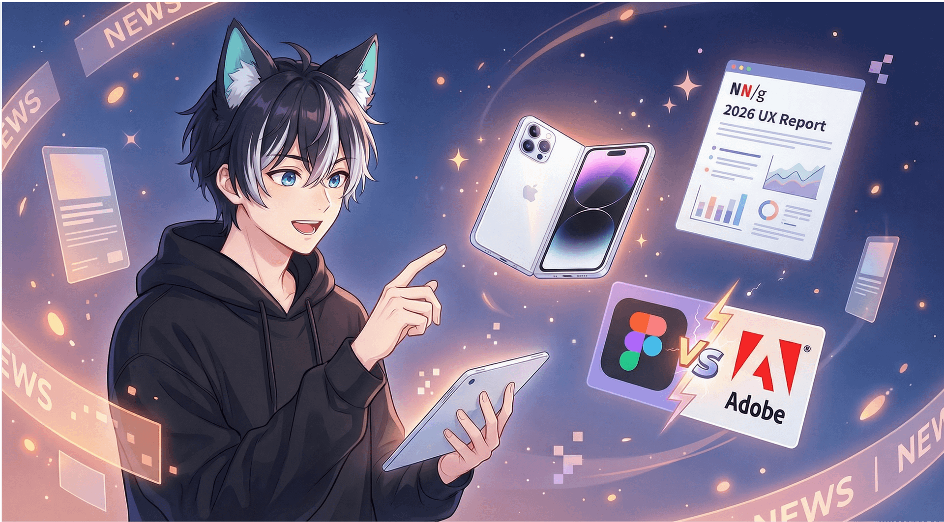 二月第一週,設計圈的新聞量不小。Apple 的第一支折疊 iPhone 設計細節被洩個精光,NN/g 發布了 2026 UX 產業年度報告,Figma 與 Adobe 的 AI 軍備競賽進入新階段,Victorinox 破天荒邀請全球設計師重新設計瑞士刀,Jakob Nielsen 則丟出了「Generative UI」的預測,可能改變我們對介面設計的理解。